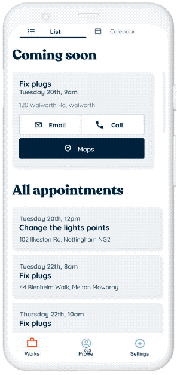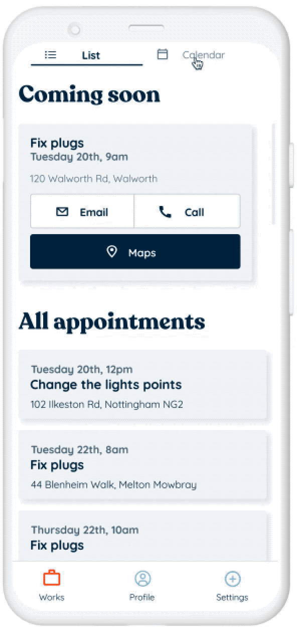 In works, the user can check and manage the bookings from clients.